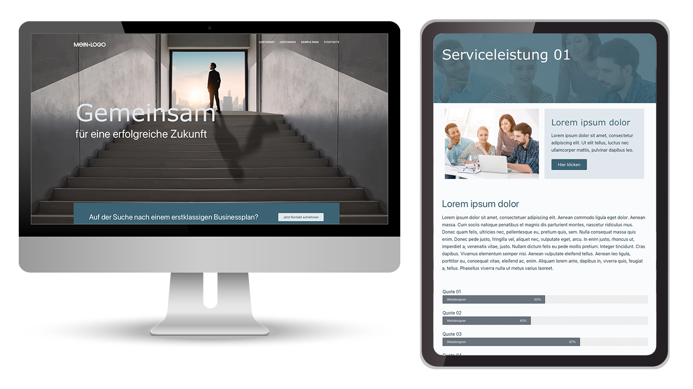 Diese Vorlagen bilden nur das Grundgerüst deiner Website und sind individuell für deine Bedürfnisse oder Unternehmensart anpassbar.